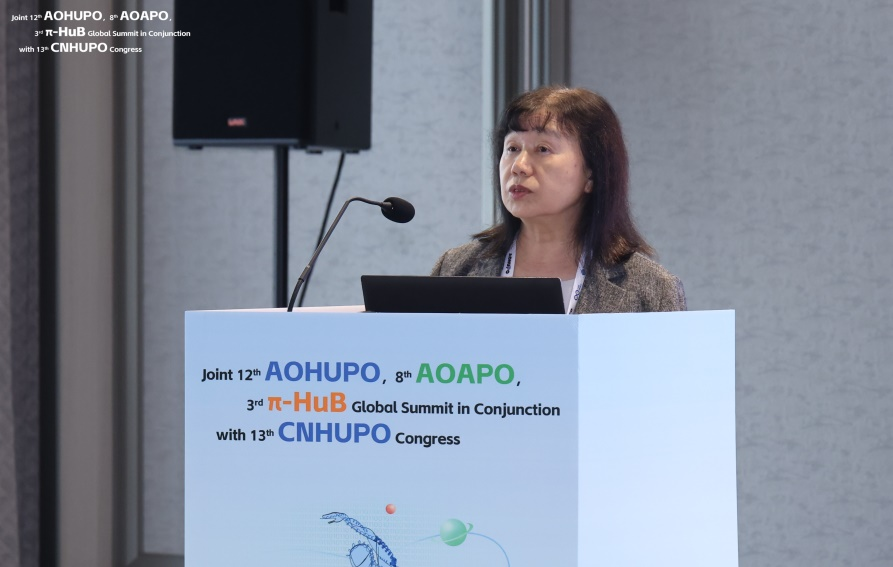 Setsuko Komatsu教授围绕大豆生长在模拟微重力环境中应答盐胁迫的调控机制,详细介绍了盐胁迫下大豆根系中活性氧清除蛋白含量增加,但在模拟微重力环境中即使存在胁迫,其含量未显著提升的现象。她指出模拟微重力环境可能通过提高水分渗透性、抑制活性氧产生及恢复蛋白质折叠等途径,调控大豆在盐胁迫下的生长。