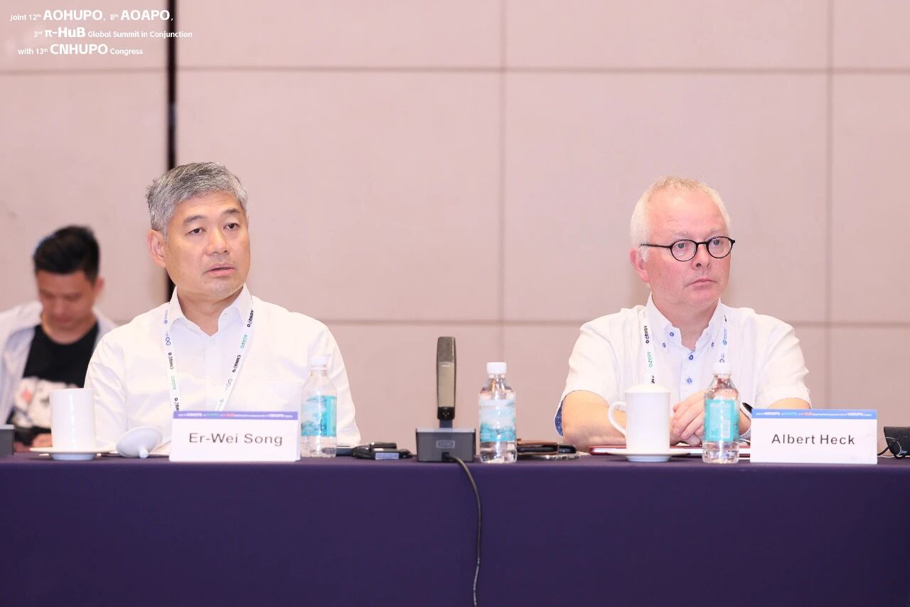 参会嘉宾阵容涵盖全球蛋白质组研究领域的领军者,形成“多区域、全链条” 的全球智慧协作格局:欧洲分子生物学组织\德国科学院Ruedi Aebersold院士(瑞士苏黎世理工大学)、德国科学院及美国科学院Matthias Mann院士(德国马克斯·普朗克生化研究所)、国际人类蛋白质组组织(HUPO)前任主席Mark Baker教授(澳大利亚麦考瑞大学)及现任主席Uwe Völker教授(德国格赖夫斯瓦尔德大学)、加拿大皇家科学院Ming Li院士(滑铁卢大学)、国际人类疾病蛋白质组计划联合主席Edouard Nice教授(澳大利亚蒙纳士大学)、人类染色体蛋白质组计划执行委员会主席\加拿大皇家科学院Christopher M. Overall院士(加拿大不列颠哥伦比亚大学)、荷兰皇家科学院院士Albert J. R. Heck 教授(乌得勒支大学)、欧洲科学院吕爱平院士(香港浸会大学)、欧洲生物信息研究所Juan Antonio Vizcaíno教授、荷兰阿姆斯特丹大学Connie R Jimenez教授、瑞士苏黎世联邦理工学院Bernd Wollscheid教授、韩国延世大学Ho Jeong Kwon教授、新加坡南洋理工大学Wilson Wen Bin Goh研究员、亚太蛋白质组组织主席Terence Chuen Wai Poon教授(澳门大学),以及贺福初院士、饶子和院士、詹启敏院士、高文院士、高福院士、宋尔卫院士等国内外顶级专家。各方围绕 “完善组织架构”“完善项目评估机制”“加强国际合作” 等核心议题,展开了高效务实的深度交流与专业研讨。